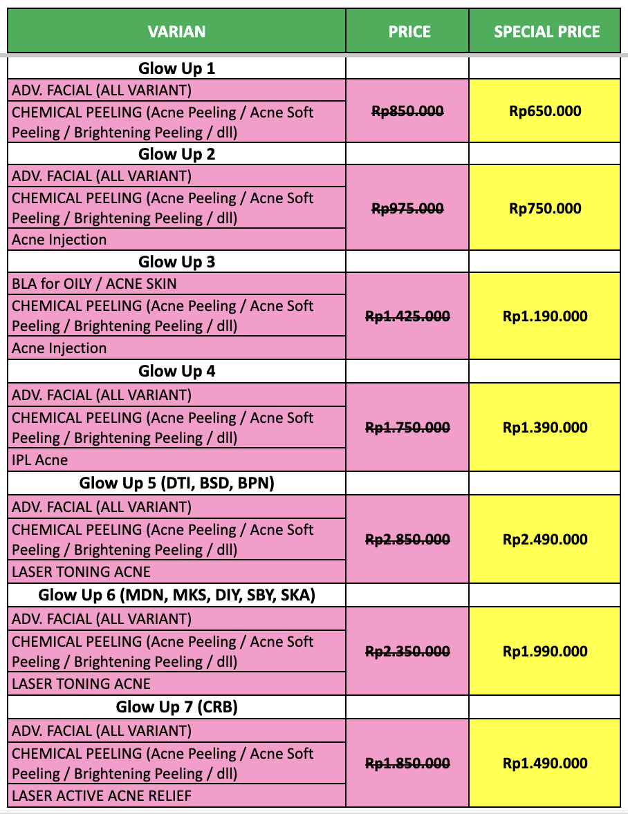 Dengan harga mulai dari Rp650.000, kamu sudah bisa merasakan perawatan profesional lengkap dengan Konsultasi Dokter GRATIS. Kamu akan dibantu untuk menentukan jenis perawatan yang paling cocok, sehingga hasilnya pun bisa lebih optimal.